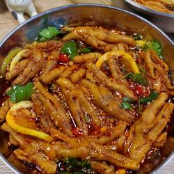 1.Preparation Add an appropriate amount of chicken feet to the cooking wine, green onions and ginger and boil them in cold water for 10 minutes.Rinse repeatedly with cold water to remove the bones and put them into a bowl.