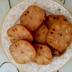 6.Slice and eat.The color of the lotus root will be better if you use the brown sugar water to collect the juice and pour it on top.However, my husband was afraid that it would be too sweet, so he didn’t pour the sauce on it, but it still tasted great.