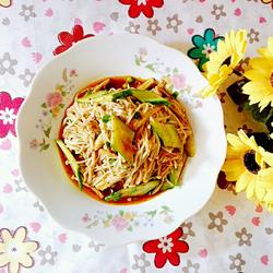 Remember to chill the blanched enoki mushrooms with cold water, otherwise they will taste bad when you eat them.