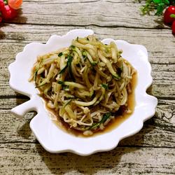 2. Remove the roots of enoki mushrooms, wash and set aside, wash and cut cucumbers into shreds and set aside