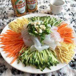 3. Arrange shredded carrots, cucumbers, and dried tofu around the plate, and put the vermicelli in the middle (use a larger plate, don’t ask me how I know this, Change the plate)