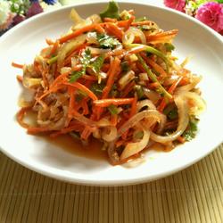 1. Prepare the ingredients in the picture.Wash the pork skin, carrots, onions, coriander, ginger and garlic.