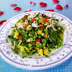 12. Mix several ingredients together, sprinkle with salt, pour in the most delicious flavor, drizzle with sesame oil, mix evenly, sprinkle with shrimp skin, add a few wolfberry seeds, garnish,