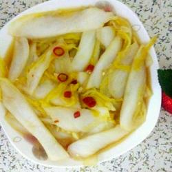 4. Stir-fry the cabbage until soft, add appropriate amount of salt, chicken essence, oil, rice vinegar, and add a small amount Cornstarch, white sugar, and stir-fry for five minutes.