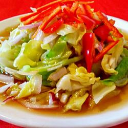 5.Put it on a plate, sprinkle some bell peppers, and a green and refreshing coleslaw is ready.