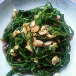 3. Add the blanched dandelions Mix minced garlic, light soy sauce, balsamic vinegar and sesame oil