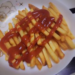 6.Put it on the plate, squeeze on the tomato sauce, and you're done.
