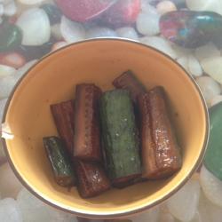 7. Pickled cucumber strips are sweet and sour and appetizing.