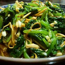 8. Take a plate and pour in the mixed spinach and enoki mushrooms!