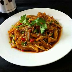5.After the pig ears are cooked, pick them up and rinse them with cold water several times, dry them and cut them into thin slices