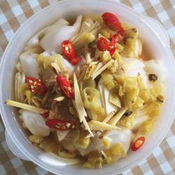 3. Could you please put together the ginger, acid, chili, white vinegar, white sugar and soy sauce? Pour it into the "guy" filled with radish, add some cold boiled water, and just pickle it.