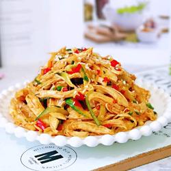 ② Wash the cucumbers and shred them, peel and shred the carrots, rinse the cooked chicken breasts with cold water, and tear them into strips by hand.
