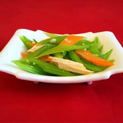 4.Add appropriate amount of salt, pepper oil, vinegar and sugar, stir well and taste the delicious celery cold yuba cubes..
