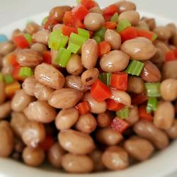 8.Add the diced carrots and celery to the peanuts, add a few drops of sesame oil, and mix well