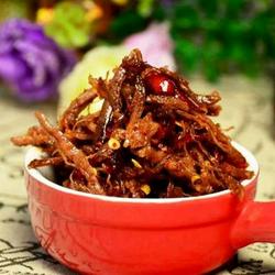 6.Put the dried shredded beef into a basin, pour in and mix of chili oil, stir evenly.