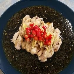 1. Debone the chicken legs, put them in a pot with cold water and boil them with green onions and ginger slices, then cook for 10 minutes, turn off the heat and simmer for a while