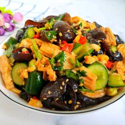 2.Cut the cucumber and marinate it with salt for 10 minutes.Then pour away the pickling water.The cucumber will be very crispy.
