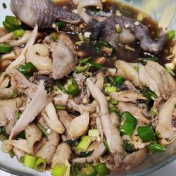 1. To marinate chicken legs, you can use whole chickens.Slice the ginger, add 3 to 5 tablespoons of cooking wine, a pinch of Sichuan peppercorns, a small spoonful of salt, a small spoonful of pepper, stir evenly, and marinate for 20 to 30 minutes