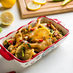 6. Drain the chicken feet and pour in the water and mix well of juice, add lemon and passion fruit, and mix well with your hands.