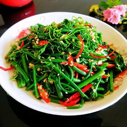 19. There was a sizzling sound, and the high-temperature oil was poured on the seasoning.
