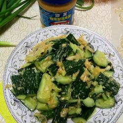 3.Mix the peanut butter and garlic paste, and stir well into the cucumber