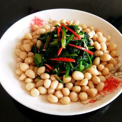 1.Prepare ingredients: 1 handful of spinach, 1 handful of peanuts (use large white-skinned peanuts), 3 millet peppers, 1 garlic clove (actual amount)