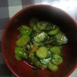 7.Then pour the garlic, garlic sauce and salt into the cucumbers in sequence