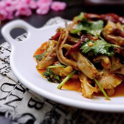 • Illustration of how to make red oil belly silk 11. Clean the pork belly: first scrape off the mucus on the surface of the pork belly, sprinkle a little flour and knead it for a while, rinse it with clean water, then sprinkle a little salt and rub it for a few minutes, then use Rinse with clean water