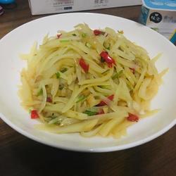 5.Finally, pour a little light soy salt on the shredded potatoes and stir evenly