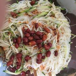 4.Put the prepared things into a large bowl, add salt, monosodium glutamate, oyster sauce, sesame oil, sugar, chili oil in order, mix well, and finally add vinegar, peanuts,