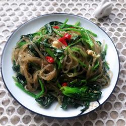 Spinach and vermicelli are not easy to cook for too long.You can sprinkle some cooked sesame seeds or chopped peanuts , will be more delicious