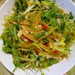 The oil temperature is not likely to be too high, as it is easy to fry the chili noodles, so be careful to control the oil temperature! Do not blanch lettuce for too long.
