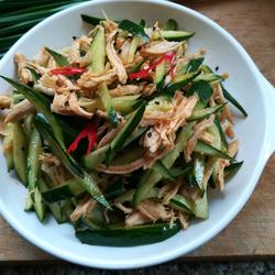 3.Put shredded chicken and cucumber in a bowl, add minced garlic, millet pepper, a teaspoon of very fresh taste, and an appropriate amount of salt , sesame oil and black sesame seeds, mix well and serve on a plate.