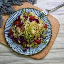 3.Cut the purple cabbage and cherry tomatoes into small pieces