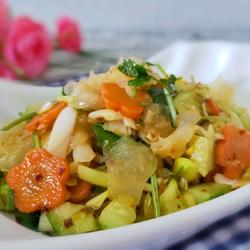 4. Blanch the white fungus carrots, take them out, drain them in cold water and drain them.