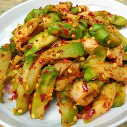 4. Pour the dried mustard in boiling water and soak in cold water for about 20 minutes.Remove and drain.Dry the water, add crushed pepper, salt, chicken essence and sesame oil, mix well and eat