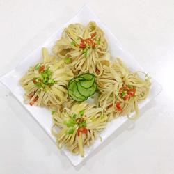 1. Blanch the thousand sheets in salted boiling water, take them out, drain and let cool for later use.(Or blanch in salt water for two minutes)