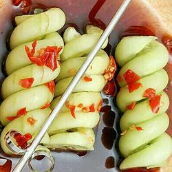 3.Spin the cucumber into a spiral shape and put it on the plate