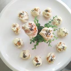 1.Take the meat from the prawns and add salt , MSG, chicken essence, pepper, onion and ginger, marinate and set aside