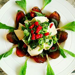 7.Sprinkle coriander and red pepper segments on the preserved tofu eggs p>