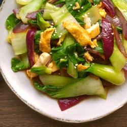 4. Cut the egg pancake into 1cm wide strips and mix them with onions and rapeseed.Add light soy sauce, vinegar, sugar and salt, mix well and put it on the plate.Sprinkle some sesame seeds for a better look~