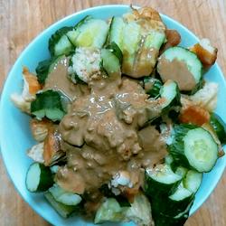 Recipe of sesame sauce cucumber mixed with fried dough sticks