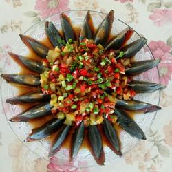 1.3 preserved eggs, green and red peppers, ginger, garlic, prepare a thread