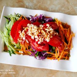 1. Cut purple cabbage and green pepper into shreds, add a little salt and mix well.