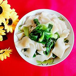 10. Add some green vegetables to the cooked pulled noodles in the pot and cook for one minute.When done, add it in On the plate, the noodles are ready.