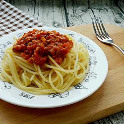 9. Boil water in a pot, add a spoonful of olive oil and a teaspoon of salt.Put the pasta vertically into the pot and use chopsticks to open it up.After cooking for 8-10 minutes, remove from the cold water, put it on a plate, and top with the sauce.