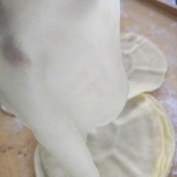 7. When the water is boiling, put a piece of cake on the basket, and the dough will be ready in about a minute.When it is translucent, put the second one until it is all gone