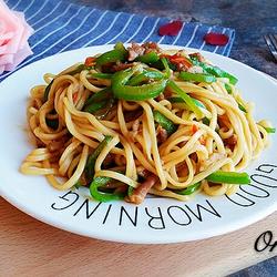 How to make fried noodles with green pepper and shredded pork