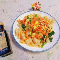 9.Add carrot shreds and stir-fry a few times.