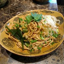 1.First make the cold noodles Sauce required.Making the sauce: Put the red oil base, a little sesame paste, soy sauce, red oil, vinegar, salt, chicken juice, MSG, and Maggi together and stir in one direction.Stir until the desired consistency is OK